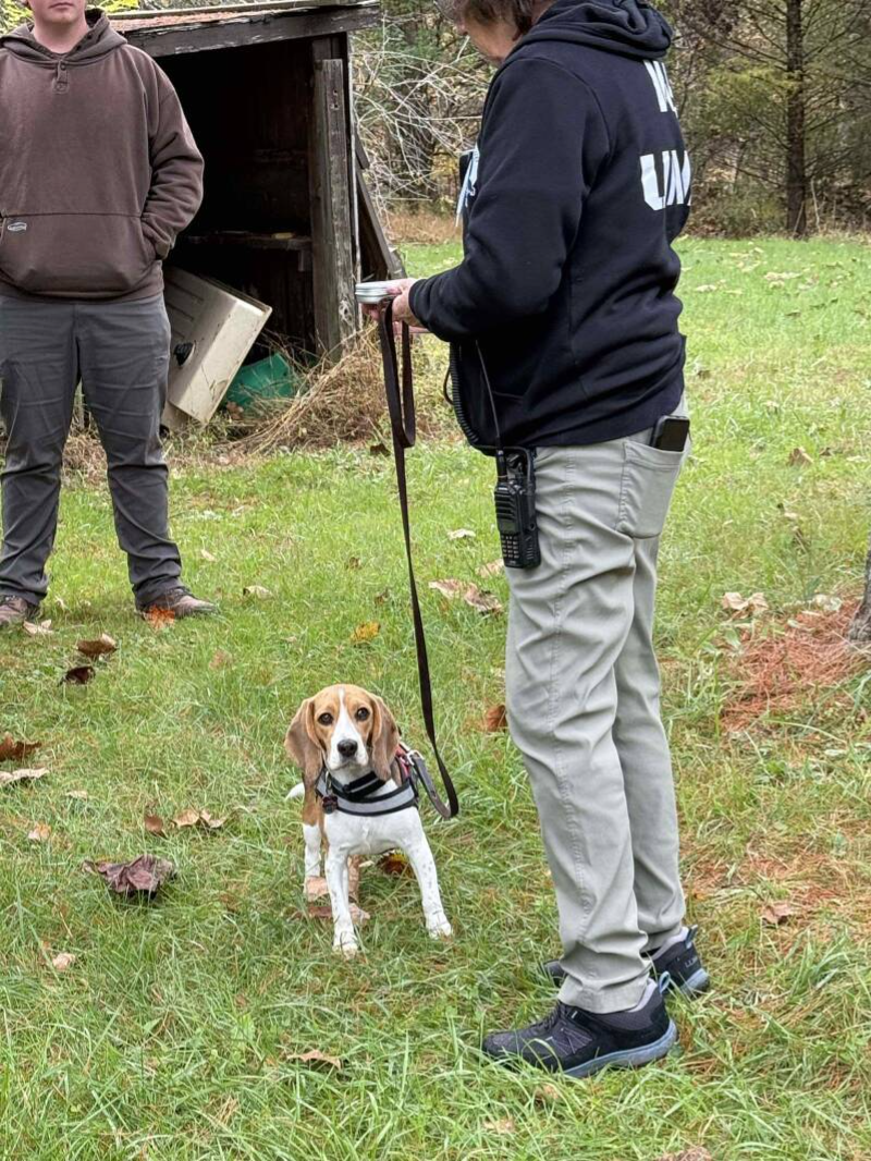 Wilderness Trailing is the scent specific pursuit of one individual’s scent, following skin rafts (shed skin cells) wherever they have been dispersed. The K9’s nose will be down close to the ground but may also be up at times, acquiring the scent in the best manner possible. The weather, wind and topology will be the determining factors in how a K9 works a trail. Because of this, Trailing dogs will many times work a trail off the track by several feet. In addition, Trailing K9s can work extremely aged trails.
